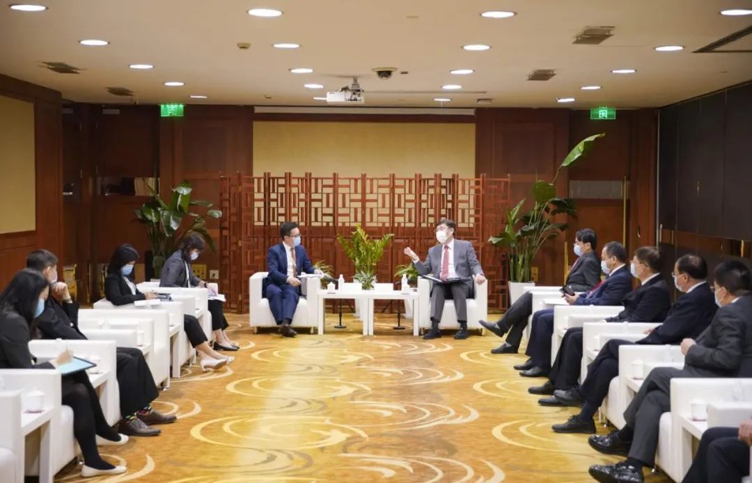 4日,王文涛会见路易达孚集团全球首席商务官兼亚太区总裁周学军一行。